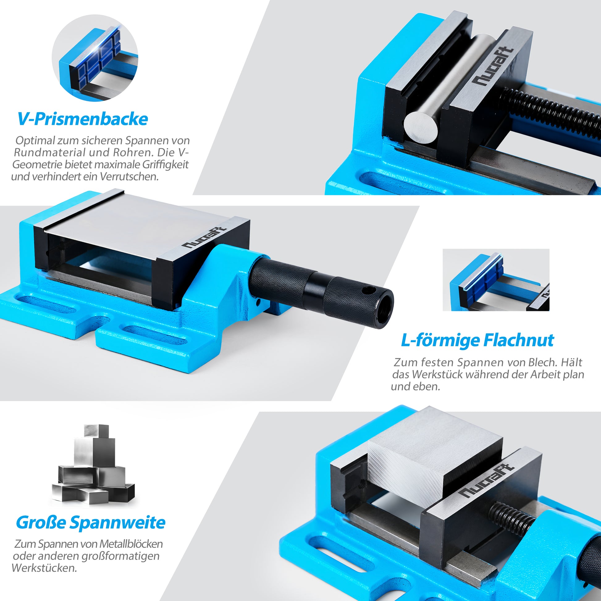 - Schnellverstellung: Nucraft Maschinenschraubstock ermöglicht ein schnelles und einfaches Anpassen der Spannweite für effizienten Arbeitsablauf.
